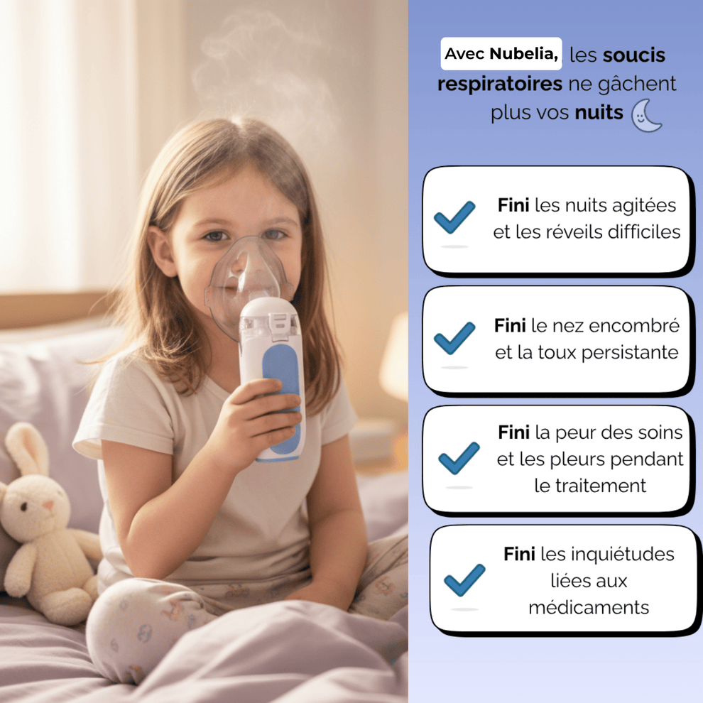 La nĂ©bulisation permet de fluidifier les sĂ©crĂ©tions et dâapaiser les voies respiratoires en douceur, sans agression.