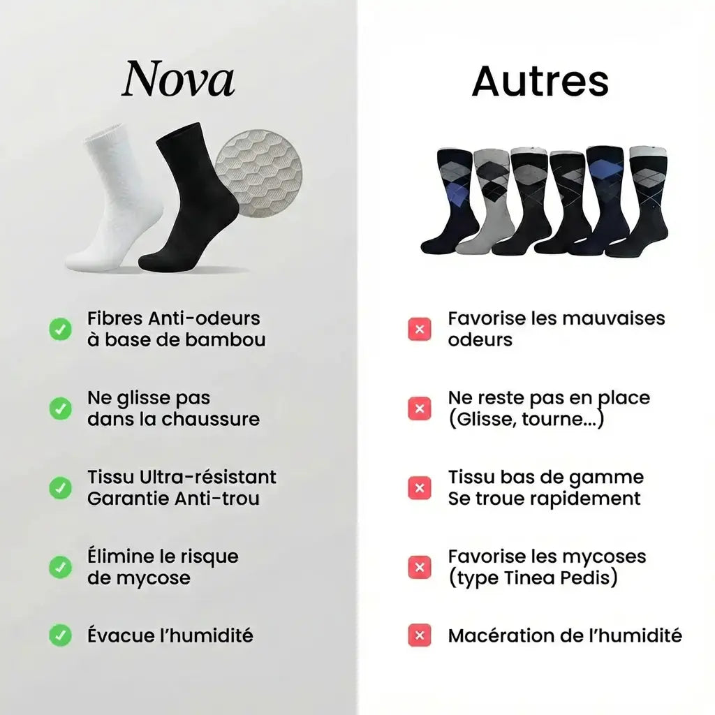 Grazie al tessuto traspirante e alla fibra di bambù naturalmente antibatterica, le calze Nova mantengono i piedi asciutti dalla mattina alla sera, senza quella sgradevole sensazione di umidità.