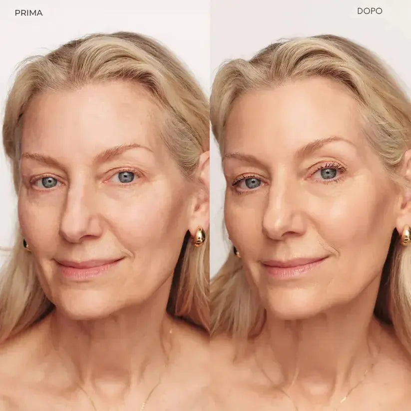 Al contrario! La sua texture leggera e idratante leviga le rughe invece di accentuarle. Risultato: un incarnato uniforme e luminoso che valorizza la tua pelle matura.