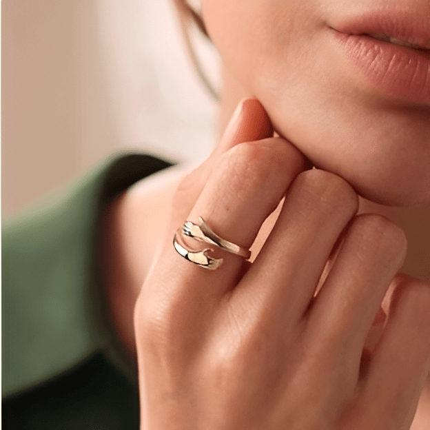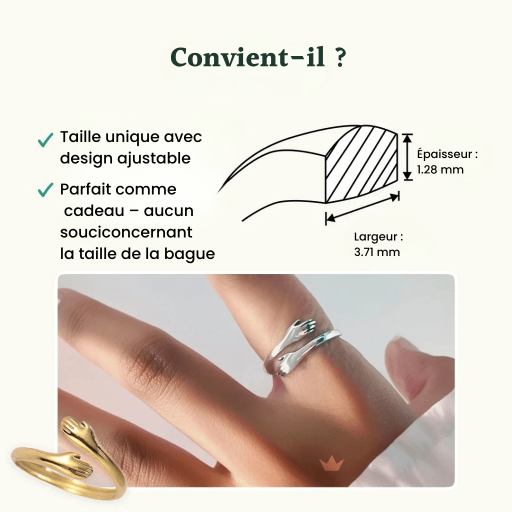 L'anello è completamente regolabile. È possibile stringerlo o allentarlo facilmente; non è necessaria alcuna misura.