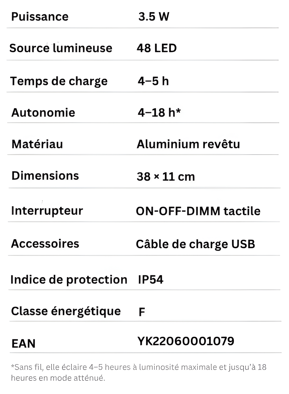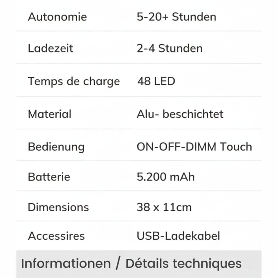 Con la sua potente batteria da 5.200 mAh, la lampada Nova può creare un'atmosfera armoniosa per un tempo compreso tra le 4 e le 18 ore (a seconda del livello di luminosità), per poi ricaricarsi facilmente grazie al cavo USB in dotazione.