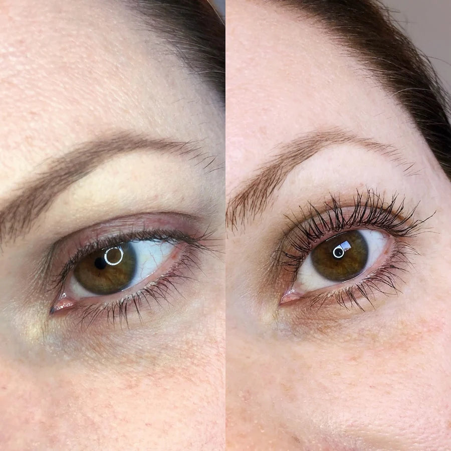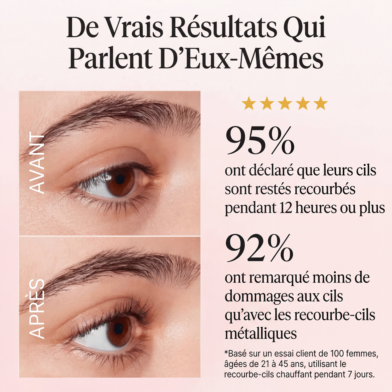 Après : cils parfaitement recourbés, regard ouvert et lumineux