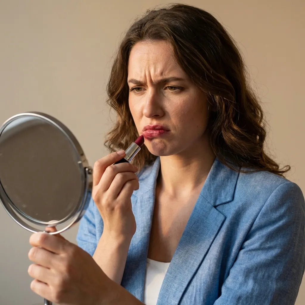 Le vrai coût est la charge mentale. Vérifier compulsivement son miroir. Anticiper avant chaque réunion. Ce petit bruit de fond permanent : « est-ce que mon rouge à lèvres est encore bien ? » qui ne s’arrête jamais vraiment.