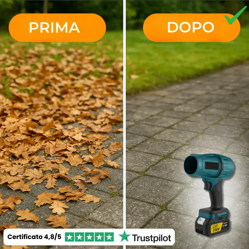 Sostituisce il fastidio di un grande soffiatore ingombrante e rumoroso.