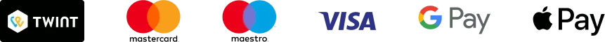 È possibile pagare in modo sicuro utilizzando i seguenti metodi: Twint, PayPal, Google/Apple Pay, carte di credito (Visa, Mastercard, AmEx).