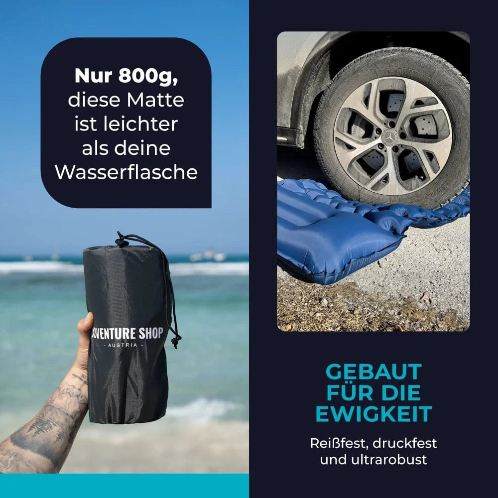 Die Matte is wasserfest und kann auch als Luftmatratze im Schwimmbad, am See oder im Meer verwendet werden.