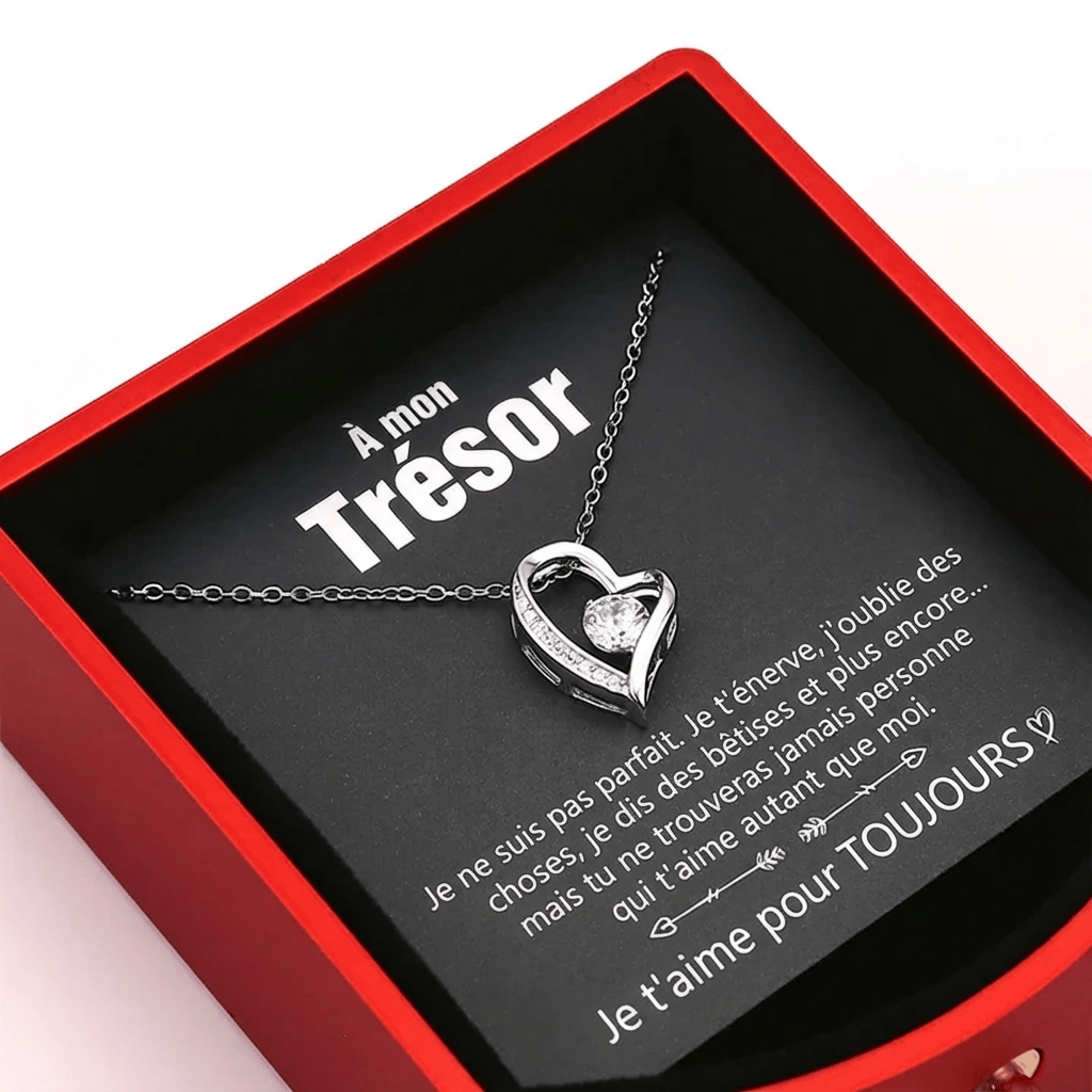 Cette boîte cadeau romantique contient, en plus du bijou, une véritable rose conservée. Surprenez votre moitié avec ce cadeau unique !